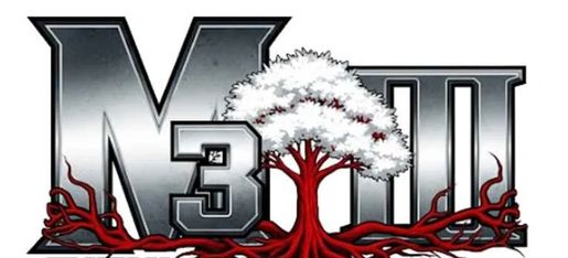 Logo with metallic text, a white tree, and red roots for M3 Tactical Supply.